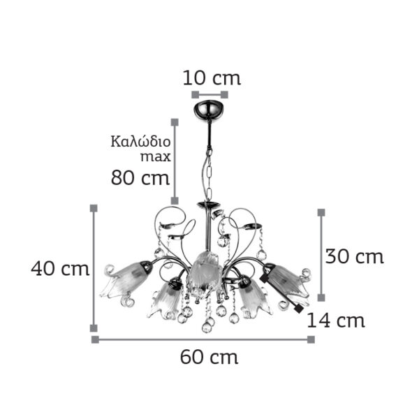 InLight Κρεμαστό φωτιστικό από χρώμιο μέταλλο κρύσταλλα και λευκό γυαλί (5300-5-CH)