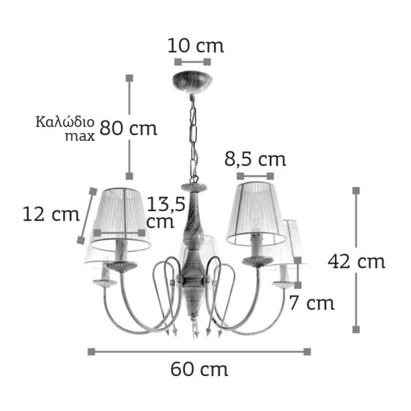 InLight Κρεμαστό φωτιστικό από λευκή πατίνα, κρύσταλλα και υφασμάτινο καπέλο (5010-5)