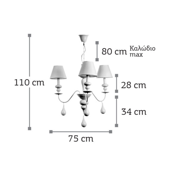InLight Κρεμαστό φωτιστικό από λευκό μέταλλο (4400-3-WH-ΡΑΓΑ)