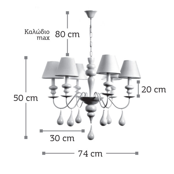InLight Κρεμαστό φωτιστικό από λευκό μέταλλο και υφασμάτινο καπέλο (5295-6Φ-Λευκό)