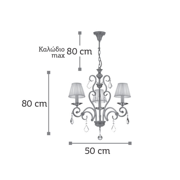 InLight Κρεμαστό φωτιστικό από μπεζ μέταλλο κρύσταλλα και υφασμάτινο καπέλο (5276-3)