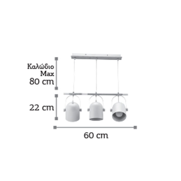 InLight Κρεμαστό φωτιστικό από λευκό μέταλλο (4400-3-WH-ΡΑΓΑ)