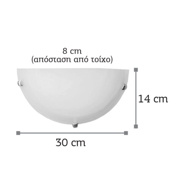 Πρόκειται για ένα επιτοίχιο φωτιστικό κατασκευασμένο από μέταλλο σε χρώμιο απόχρωση με τέσσερις λαμπτήρες που καλύπτονται από κυλινδρικό γυαλί αμμοβολής