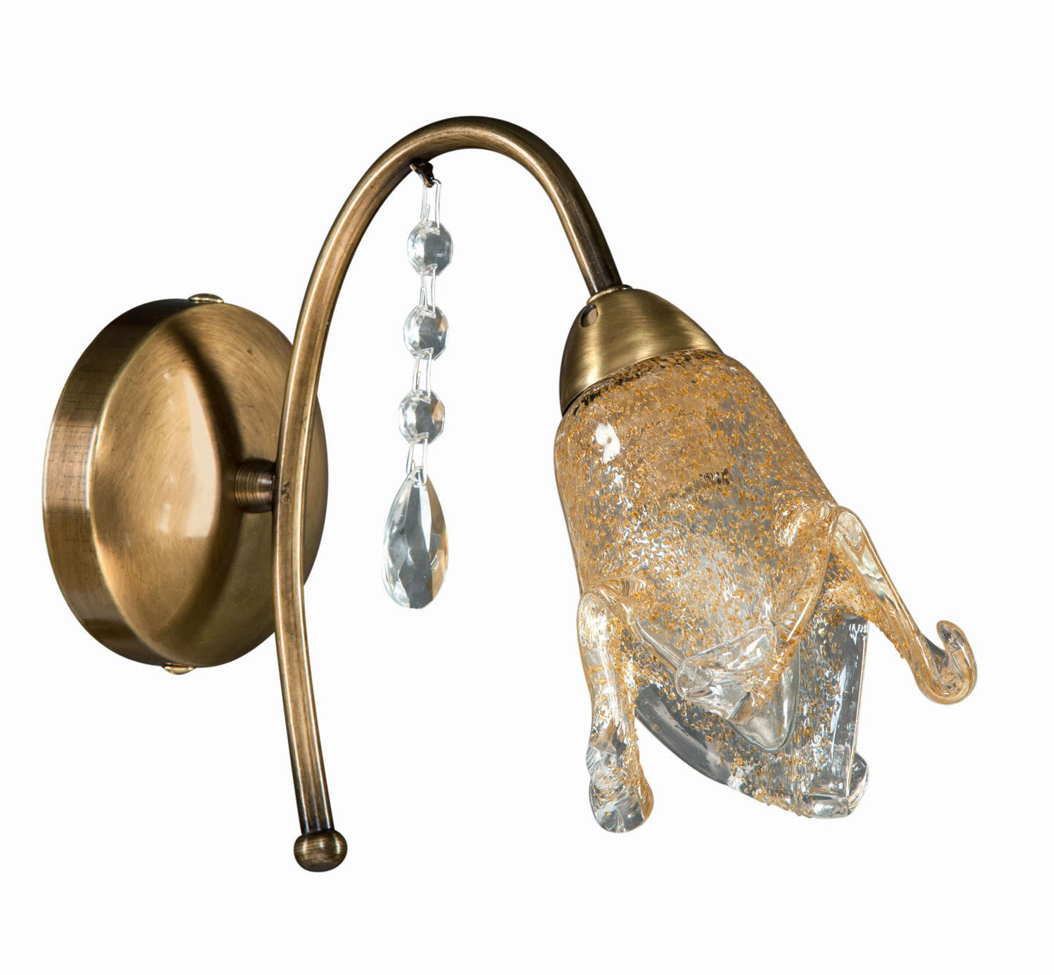 Φωτιστικό Απλίκα Ε14 σε κλασική γραμμή με μεταλλικά μέρη σε μπρονζέ με μελί γυαλί και κρυσταλλάκια