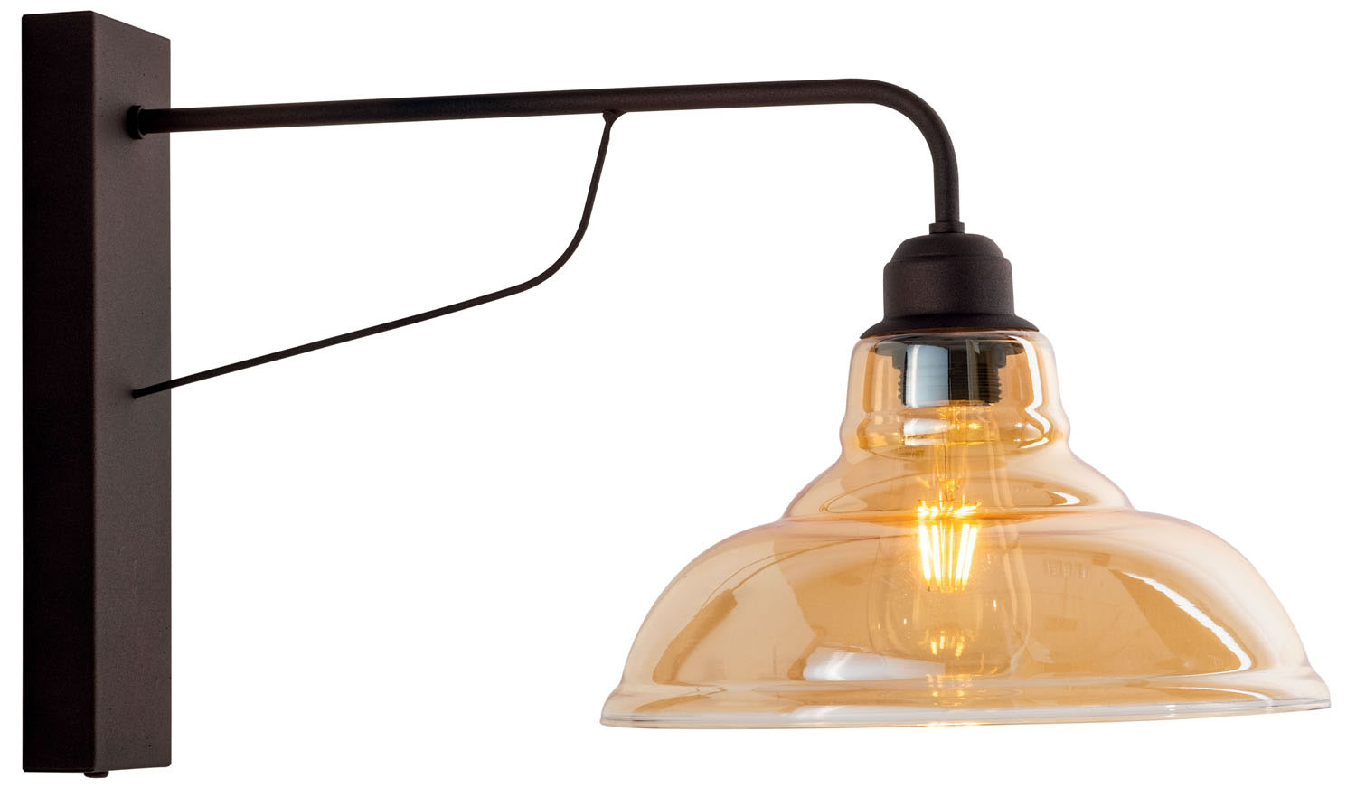 Φωτιστικό Απλίκα Ε27 σε μοντέρνα γραμμή με μεταλλικά μέρη σε χρώμα σκουριά και γυαλί μελί
