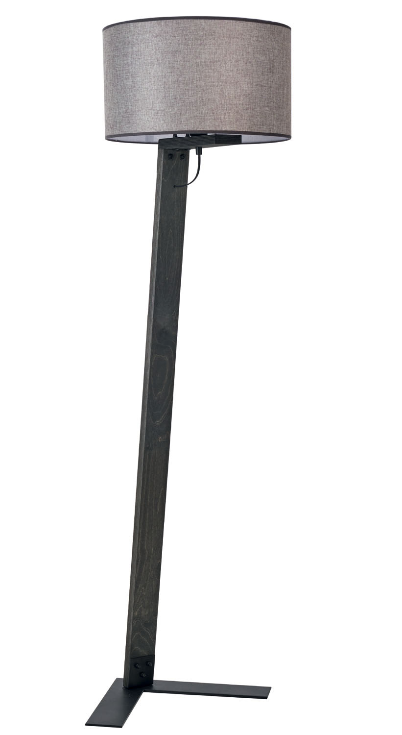 Φωτιστικό δαπέδου 1φ Ε27 σε μοντέρνα γραμμή, ξύλο σημύδα σε γκρι σκούρο χρώμα, μεταλλικά μέρη σε χρώμα μαύρο και αμπαζούρ ύφασμα σε χρώμα γκρι Φ40