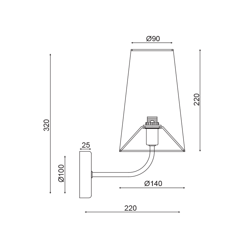 ^WALL MOUNTED LIGHTING 1ΧE27 BLACK METAL+ BIEGE SHADE 22Χ14ΧΗ32CM TUSCAN