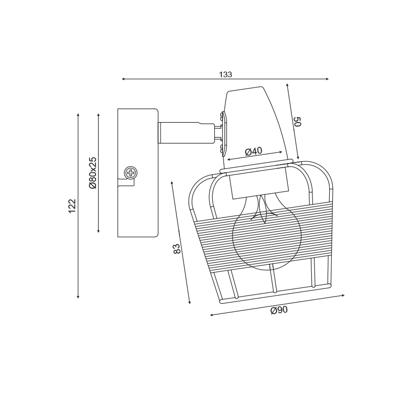 InLight Επιτοίχιο φωτιστικό από καφέ σχοινί και υφασμάτινο καπέλο (43368-WH)