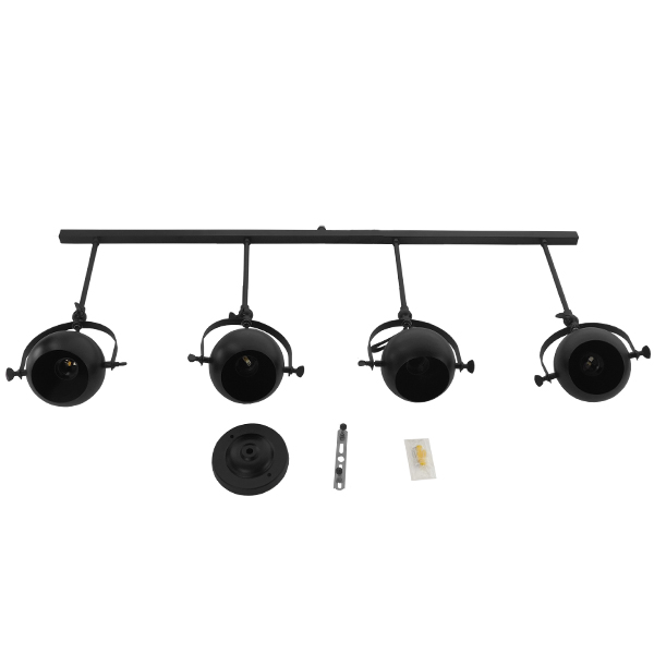 Πρόκειται για ένα φωτιστικό οροφής με τέσσερις λαμπτήρες που συνδυάζει καφέ σχοινί, μπαμπού και μαύρη μεταλλική ανάρτηση. Κατάλληλο για εσωτερικούς