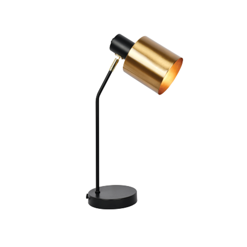 Πρόκειται για ένα μεταλλικό επιτραπέζιο φωτιστικό με μίνιμαλ σχεδίαση. Συνδυάζει αρμονικά το μαύρο και το χρυσαφί χρώμα και μπορεί να διακοσμήσει όλους τους χώρους.