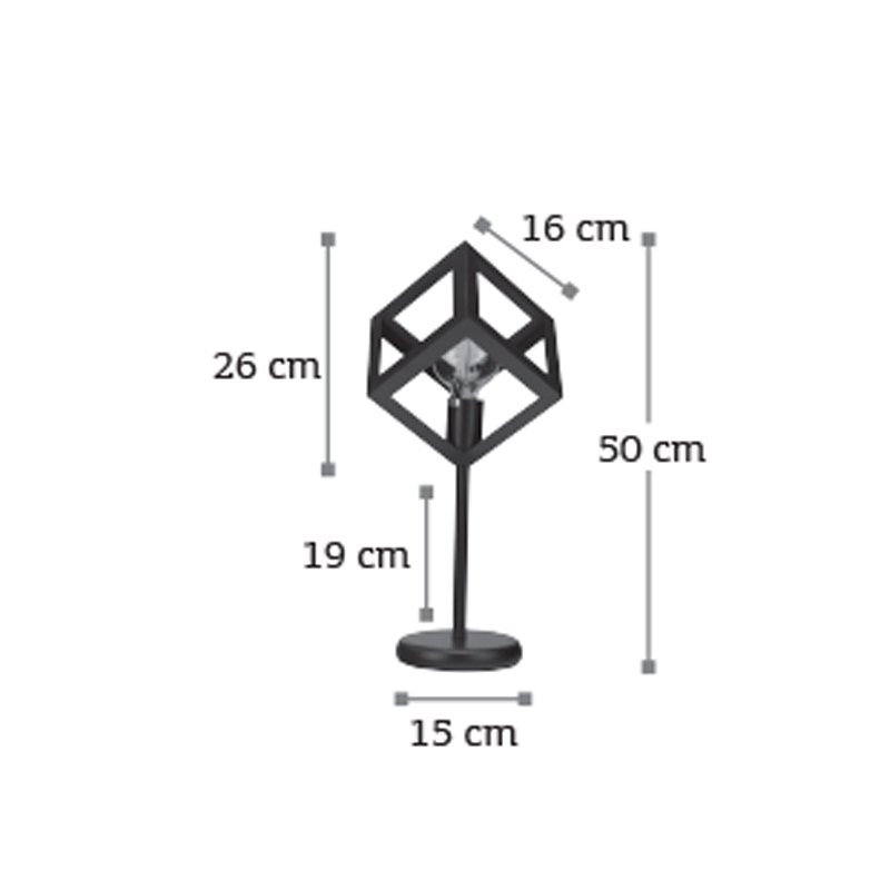 Πρόκειται για ένα επιτραπέζιο φωτιστικό με μίνιμαλ γεωμετρική σχεδίαση κατασκευασμένο από μαύρο μέταλλο. Επιτρέπει τη διάχυση του φωτός και είναι κατάλληλο για οποιονδήποτε μοντέρνο εσωτερικό χώρο.