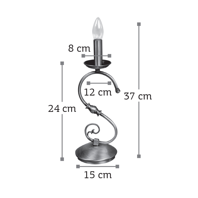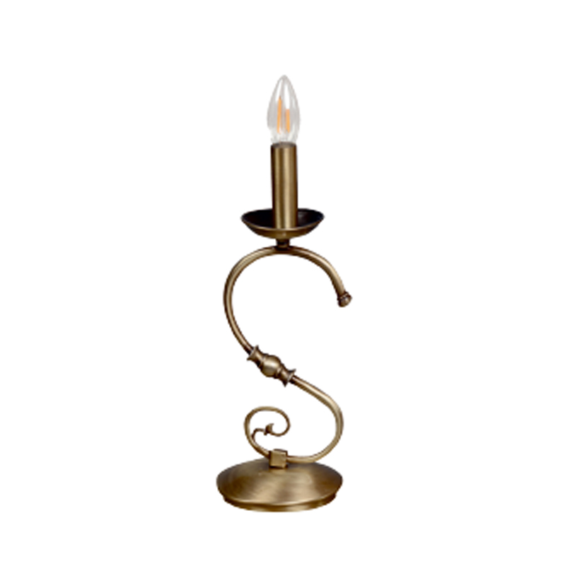 Πρόκειται για ένα επιτραπέζιο φωτιστικό από οξυντέ μέταλλο. Κατάλληλο για διακόσμηση κλασσικών εσωτερικών χώρων. Διατίθεται και λευκό υφασμάτινο καπέλο για πιο απαλό φωτισμό το οποίο θα πρέπει να ζητηθεί επιπλέον.