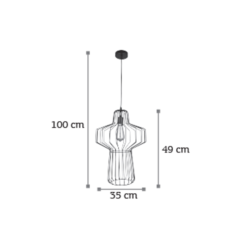 Πρόκειται για ένα μαύρο μεταλλικό κρεμαστό φωτιστικό σε ιδιαίτερη διάτρητη σχεδίαση. Η ανάρτησή του είναι ρυθμιζόμενη για να προσαρμόζεται στον κάθε χώρο.