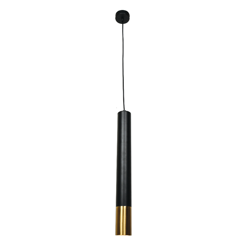Πρόκειται για ένα μεταλλικό κρεμαστό φωτιστικό με μίνιμαλ σχεδίαση. Συνδυάζει αρμονικά το μαύρο και το χρυσαφί χρώμα και μπορεί να διακοσμήσει όλους τους χώρους. Η ανάρτησή του είναι ρυθμιζόμενη.