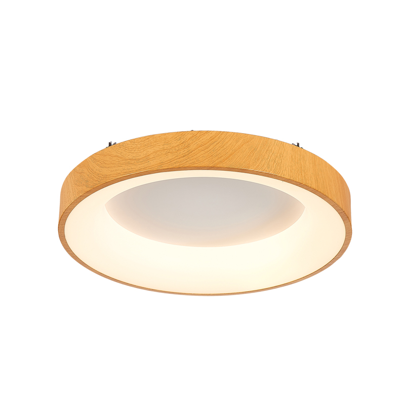Πρόκειται για ένα φωτιστικό οροφής από καφέ μέταλλο. Το εφέ ξύλου προσδίδει μία ζεστή ατμόσφαιρα στον χώρο. Το λευκό ακρυλικό καλύπτει τον led φωτισμό φυσικής απόχρωσης. Κατάλληλο και για χαμηλοτάβανους χώρους.