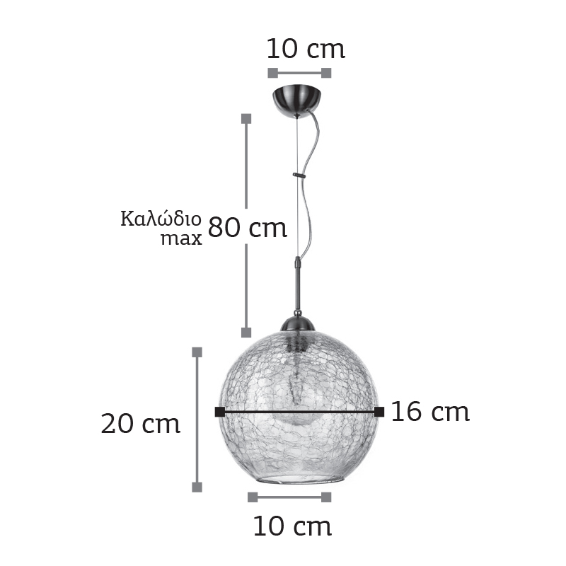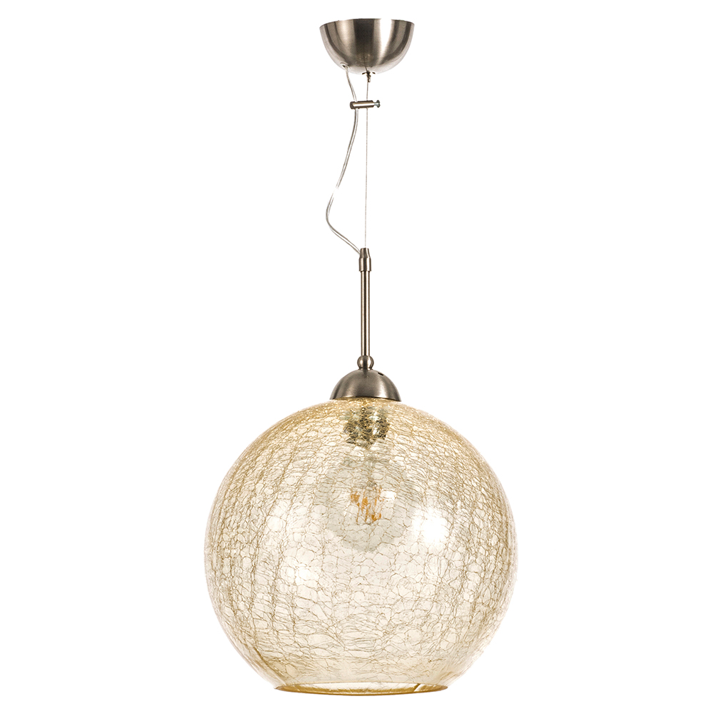 Πρόκειται για ένα κρεμαστό φωτιστικό αποτελούμενο από μελί κρακελέ γυαλί και νίκελ ματ ανάρτηση. Το γυαλί είναι ανοιχτό στο κάτω μέρος του και το συνολικό του ύψος ρυθμίζεται στον κάθε χώρο.