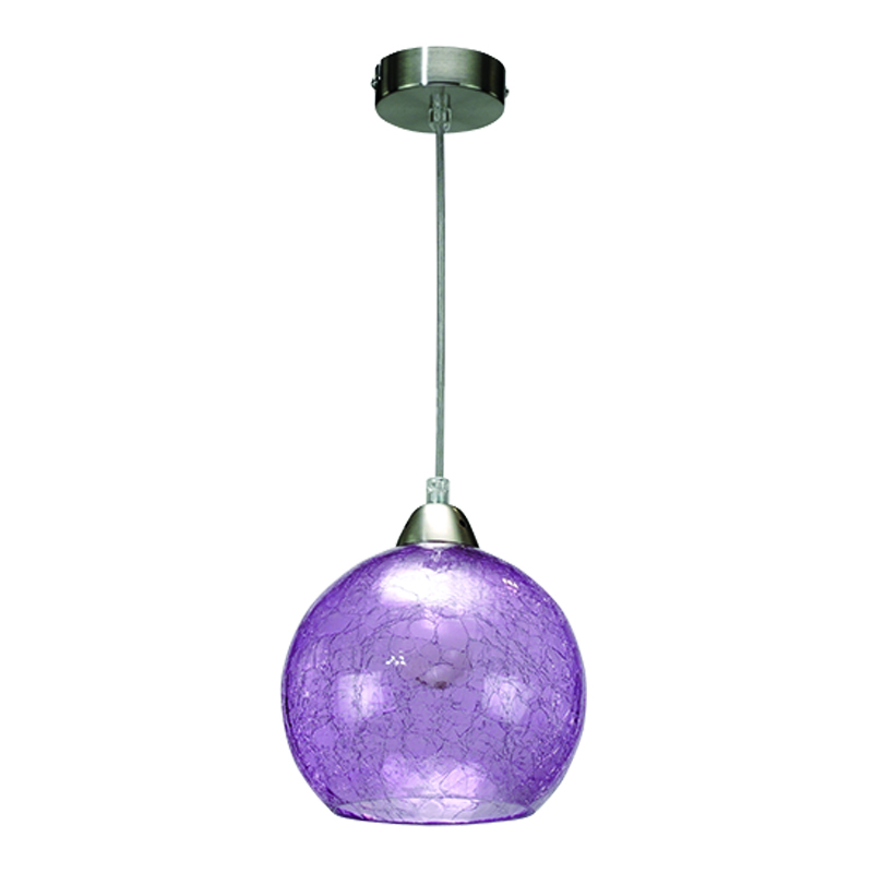 Πρόκειται για ένα κρεμαστό φωτιστικό αποτελούμενο από μοβ κρακελέ γυαλί και νίκελ ματ ανάρτηση. Το γυαλί είναι ανοιχτό στο κάτω μέρος του και το συνολικό του ύψος ρυθμίζεται στον κάθε χώρο.