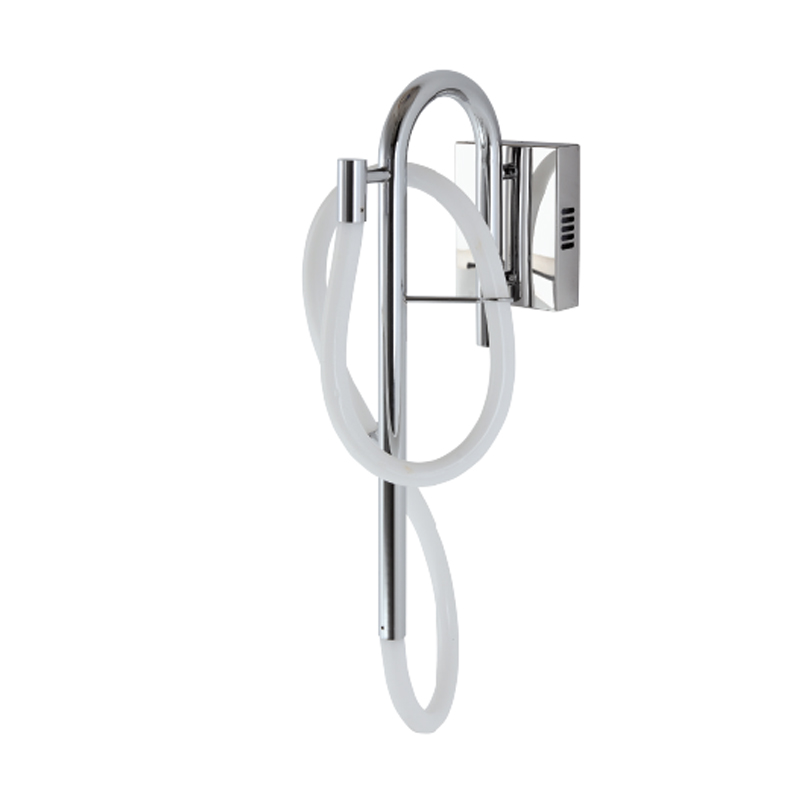 Πρόκειται για ένα επιτοίχιο φωτιστικό με αφαιρετική σχεδίαση. Το χρώμιο μέταλλο συμπληρώνει τον led φωτιζόμενο και εύκαμπτο σωλήνα θερμής απόχρωσης. Το φως διαχέεται σε όλον τον χώρο και διακοσμεί ιδανικά οποιονδήποτε μοντέρνο εσωτερικό χώρο.