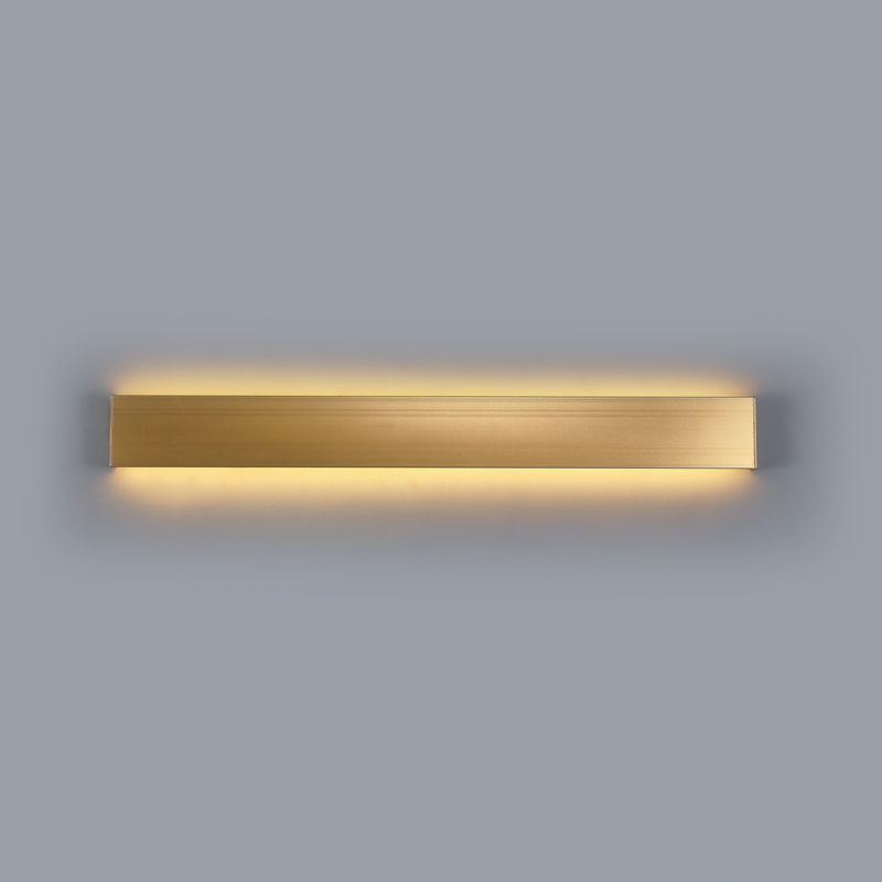Πρόκειται για ένα γραμμικό επιτοίχιο φωτιστικό κατασκευασμένο από χρυσαφί μέταλλο. Ο led φωτισμός θερμής απόχρωσης είναι τοποθετημένος στο πάνω και κάτω μέρος του σώματος.