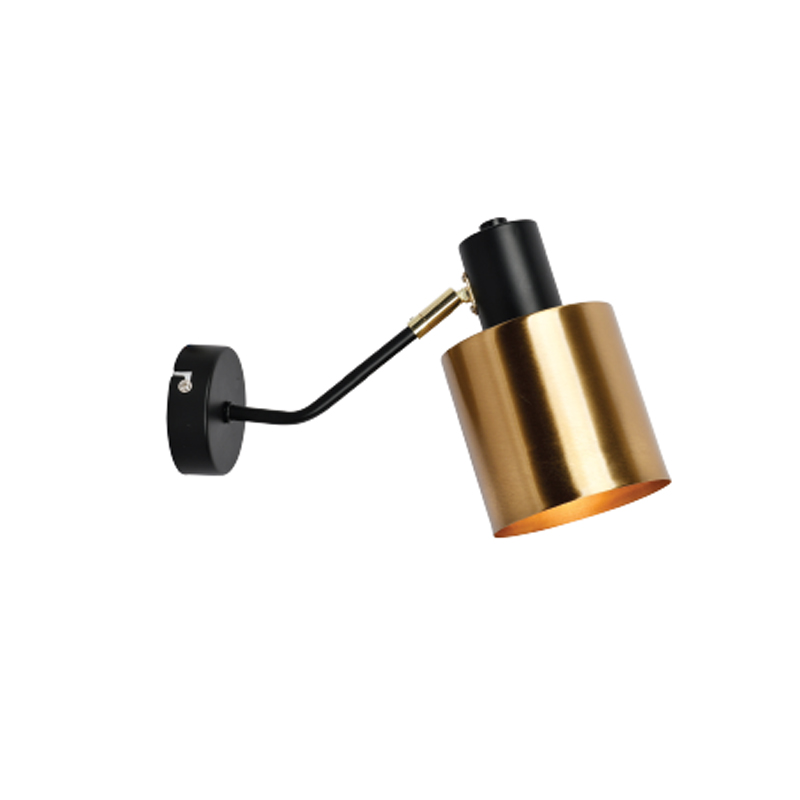 Πρόκειται για ένα μεταλλικό επιτοίχιο φωτιστικό με μίνιμαλ σχεδίαση. Συνδυάζει αρμονικά το μαύρο και το χρυσαφί χρώμα και μπορεί να διακοσμήσει όλους τους χώρους.