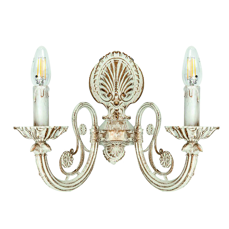 Πρόκειται για ένα μεταλλικό επιτοίχιο φωτιστικό σε απόχρωση μπεζ πατίνας. Τα κρύσταλλα δίνουν μια επιπλέον λάμψη, αλλά μπορούν και να αφαιρεθούν. Διατίθεται και λευκό υφασμάτινο καπέλα για πιο απαλό φωτισμό το οποίο θα πρέπει να ζητηθεί επιπλέον.