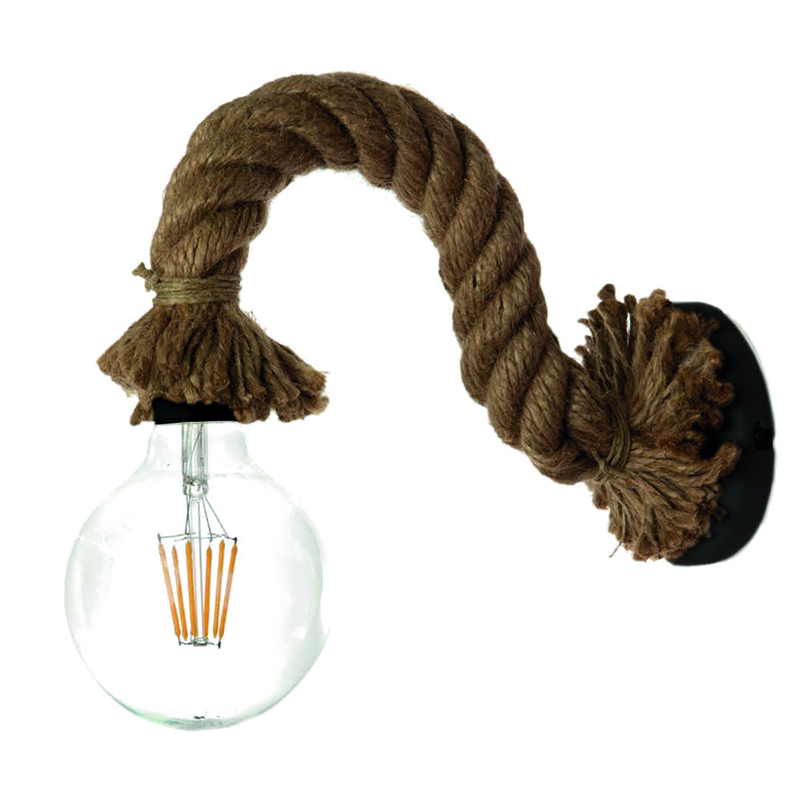 Επιτοίχιο φωτιστικό κατασκευασμένο από καφέ σχοινί με διακριτικές μαύρες λεπτομέρειες. Ιδανική για ποικίλους εσωτερικούς χώρους, αφού διαχέει το φως ομοιόμορφα.