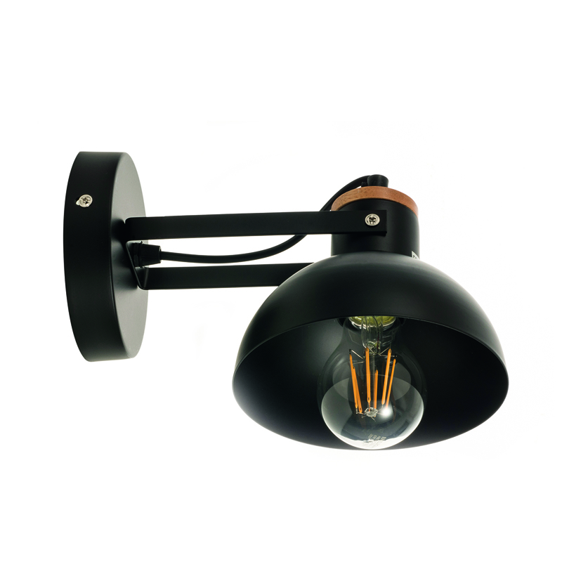 Πρόκειται για ένα μίνιμαλ επιτοίχιο φωτιστικό κατασκευασμένο από μαύρο μέταλλο και ξύλινη λεπτομέρεια. Το μπροστινό μέρος μπορεί να πάρει την επιθυμητή για τον κάθε χώρο κλίση.