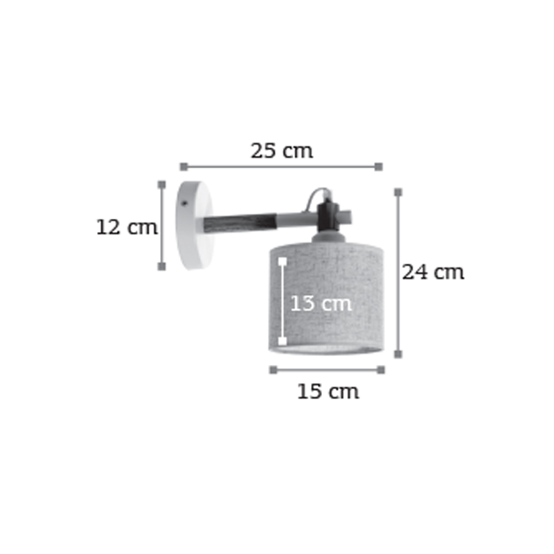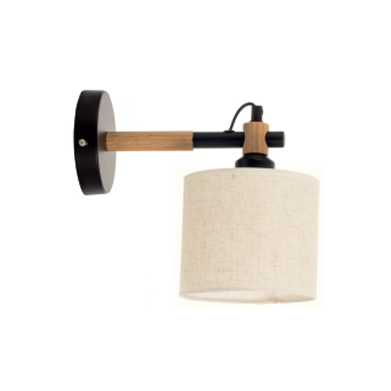 Πρόκειται για ένα επιτοίχιο φωτιστικό από μαύρο μέταλλο σε συνδυασμό με ξύλο. Η ύπαρξη του μπεζ υφασμάτινου καπέλου το καθιστά ρομαντικό καθώς ο φωτισμός του είναι πιο διακριτικός.