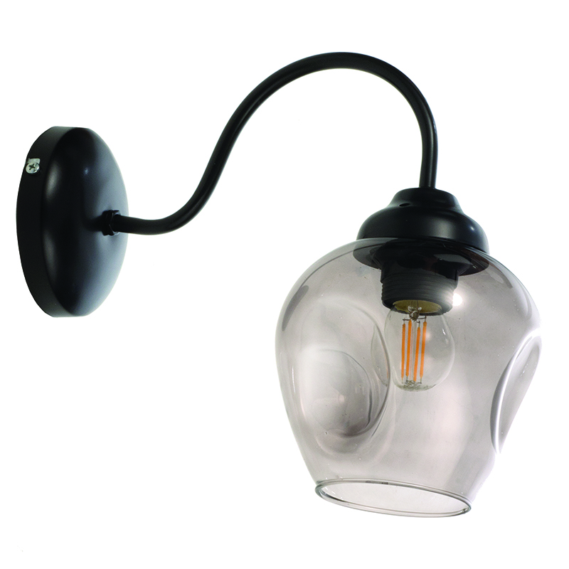 Πρόκειται για ένα μεταλλικό επιτοίχιο φωτιστικό μαύρου χρώματος. Το φιμέ γυαλί συμπληρώνει αρμονικά την εικόνα, δίνοντας ταυτόχρονα έναν πιο απαλό φωτισμό. Αν είναι επιθυμητός ένας πιο έντονος φωτισμός, υπάρχει και η επιλογή του διάφανου γυαλιού. Μπορεί να προσαρμοστεί σε οποιονδήποτε μοντέρνο εσωτερικό χώρο.