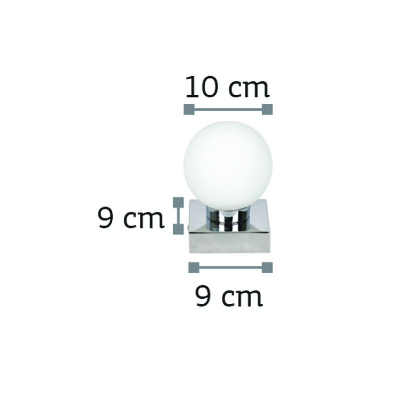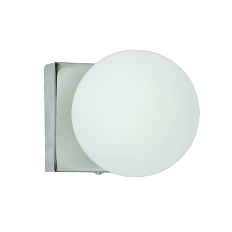 Πρόκειται για ένα επιτοίχιο φωτιστικό από χρώμιο μέταλλο λευκή οπαλίνα και έναν λαμπτήρα. Η μίνιμαλ σχεδίαση και το σχήμα του το τοποθετεί σε μοντέρνους χώρους εσωτερικής διακόσμησης. Τοποθετείται και ως φωτιστικό οροφής!