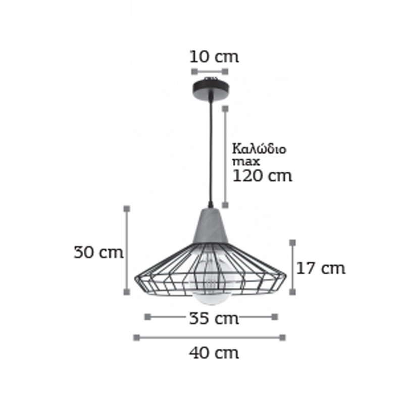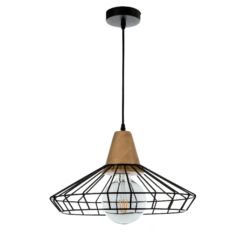 InLight Κρεμαστό φωτιστικό από μαύρο μέταλλο και ξύλο (4389)
