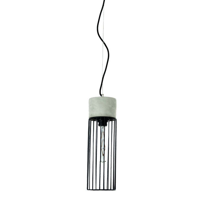 Πρόκειται για ένα μονόφωτο κατασκευασμένο από τσιμέντο, το οποίο συνδυάζεται αρμονικά με το μαύρο μέταλλο. Η μίνιμαλ σχεδίασή του το καθιστά ευέλικτο, καθώς μπορεί να σταθεί είτε ως μονάδα είτε δύο ή τρία μαζί σε ράγα ή ροζέτα στην τραπεζαρία ή στο σαλόνι. Το ύψος του φωτιστικού μπορεί να ρυθμιστεί ώστε να είναι το κατάλληλο για τον κάθε χώρο.