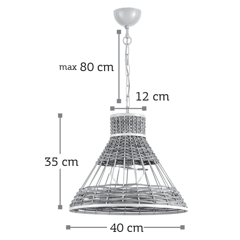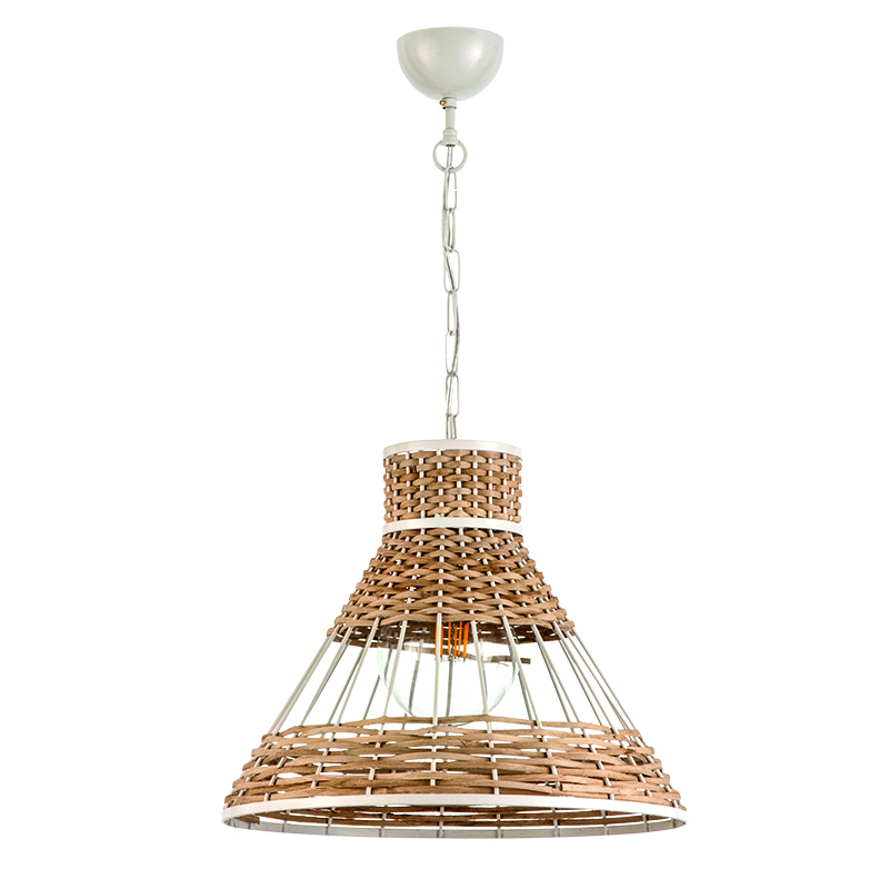 Ένα κρεμαστό φωτιστικό κατασκευασμένο από ρατάν κατάλληλο για ποικίλους εσωτερικούς χώρους. Αποτελεί την ιδανική επιλογή για όποιον επιθυμεί μια πιο χαλαρή διάθεση στον χώρο του. Το διακριτικό λευκό μέταλλο προσδίδει ένα ιδιαίτερο design. Η ανάρτηση προσαρμόζεται στο ύψος του κάθε χώρου.