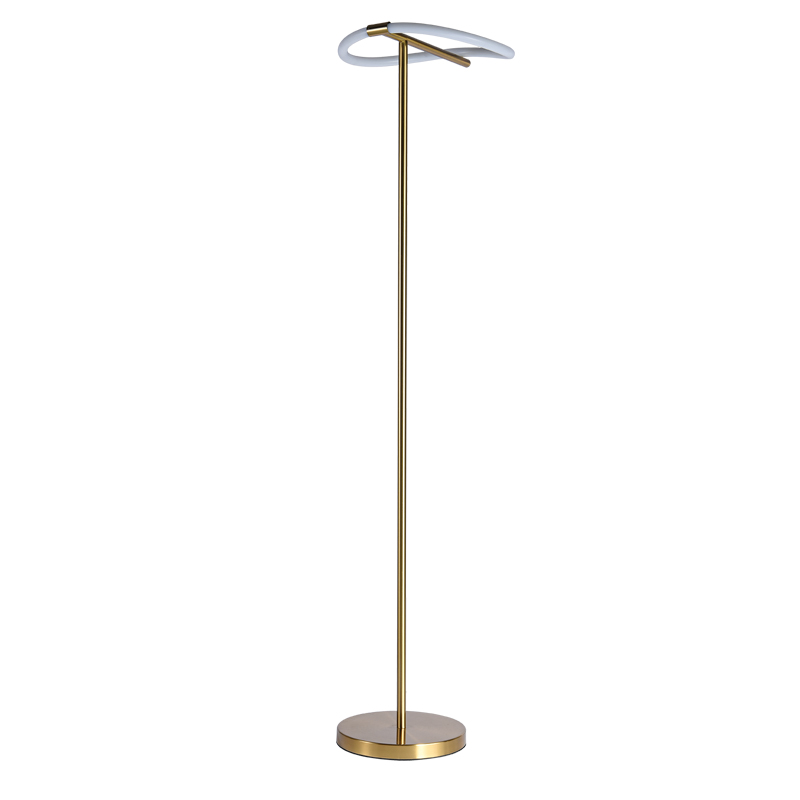 Πρόκειται για ένα επιδαπέδιο φωτιστικό με αφαιρετική σχεδίαση. Το χρυσαφί μέταλλο συμπληρώνει τον led φωτιζόμενο και εύκαμπτο σωλήνα θερμής απόχρωσης. Το φως διαχέεται σε όλον τον χώρο και διακοσμεί ιδανικά οποιονδήποτε μοντέρνο εσωτερικό χώρο.