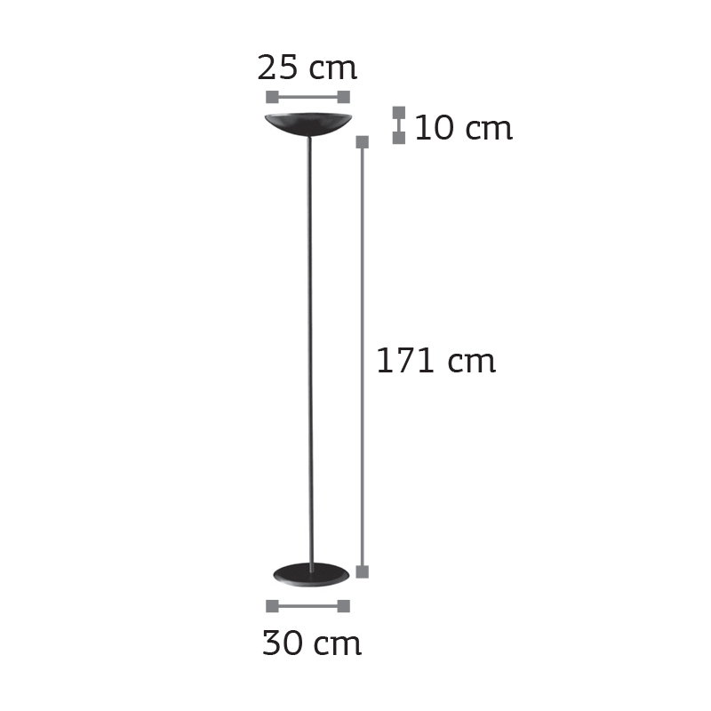 Πρόκειται για ένα μαύρο μεταλλικό επιδαπέδιο φωτιστικό. Το καπάκι που καλύπτει τον λαμπτήρα κινείται ώστε να λάβει την επιθυμητή θέση. Το φως διαχέεται ομοιόμορφα στον χώρο.