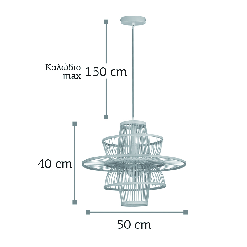 Ένα κρεμαστό φωτιστικό κατασκευασμένο από ρατάν κατάλληλο για ποικίλους εσωτερικούς χώρους. Αποτελεί την ιδανική επιλογή για όποιον επιθυμεί μια πιο χαλαρή διάθεση στον χώρο του. Η ανάρτηση προσαρμόζεται στο ύψος του κάθε χώρου.