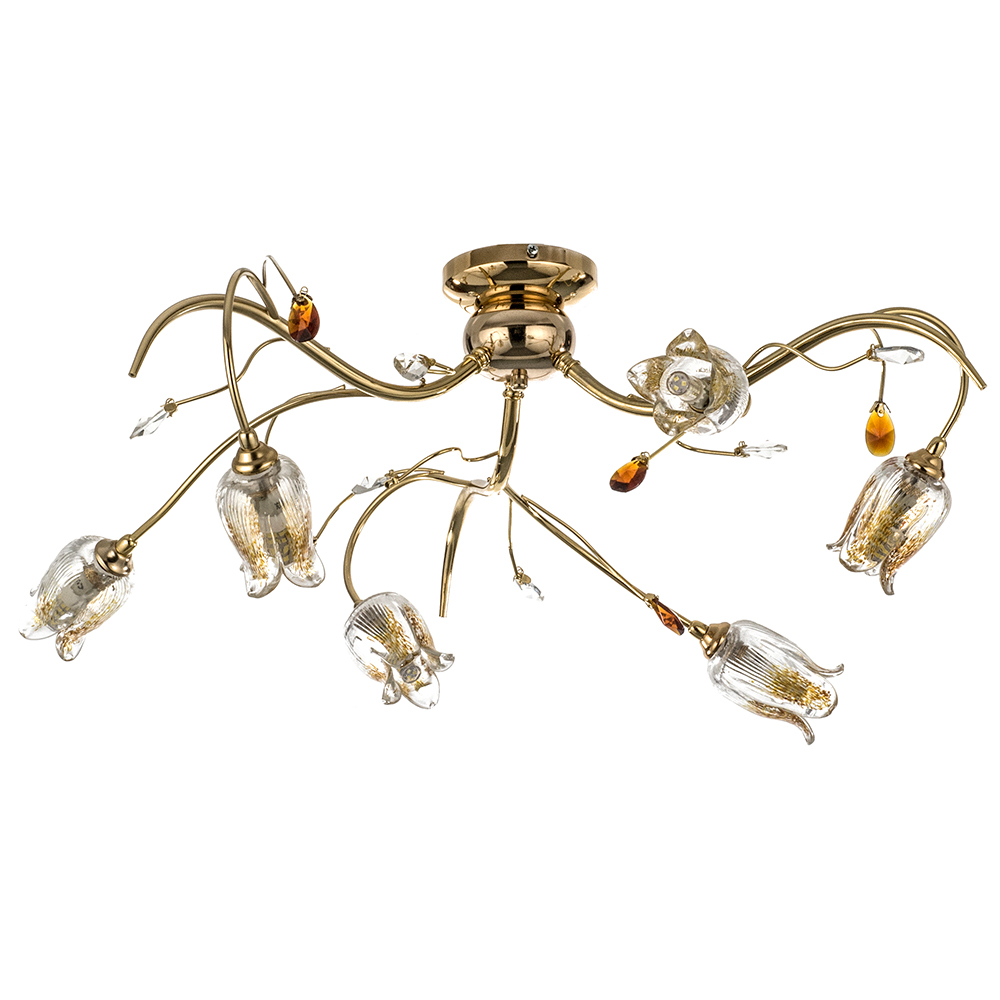 InLight Φωτιστικό οροφής από χρυσό μέταλλο κρύσταλλα και μελί γυαλί (5223-6-Χρυσό)