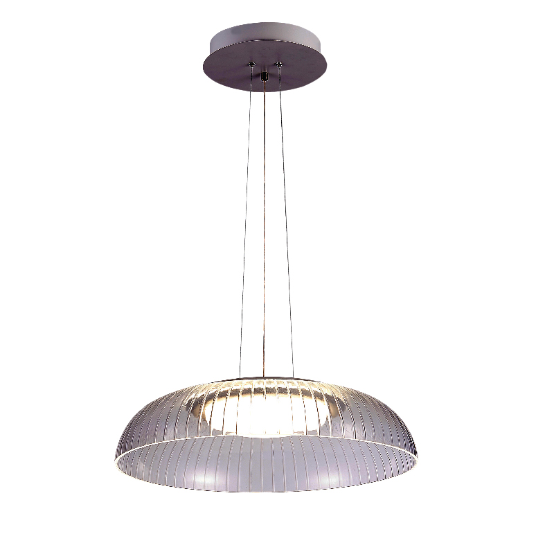 Πρόκειται για ένα κρεμαστό φωτιστικό από διάφανο ακρυλικό και διακριτική ύπαρξη μετάλλου. Ο led φωτισμός φυσικής απόχρωσης διαχέεται ομοιόμορφα στον χώρο από το κεντρικό λευκό κάλυμμα, περιφερειακά του οποίου υπάρχει μια led φωτεινή λωρίδα για να φωτίσει ομοιόμορφα το διάφανο σώμα του φωτιστικού. Η ανάρτησή του είναι ρυθμιζόμενη και τοποθετείται τόσο σε μοντέρνους όσο και σε πιο κλασικούς χώρους.