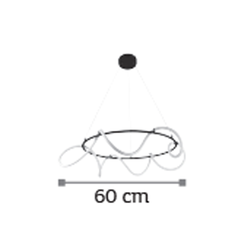 Πρόκειται για ένα κρεμαστό φωτιστικό με αφαιρετική σχεδίαση. Το μαύρο μέταλλο συμπληρώνει τον led φωτιζόμενο και εύκαμπτο σωλήνα θερμής απόχρωσης. Το φως διαχέεται σε όλον τον χώρο και η ανάρτησή του είναι ρυθμιζόμενη. Διακοσμεί ιδανικά οποιονδήποτε μοντέρνο εσωτερικό χώρο.