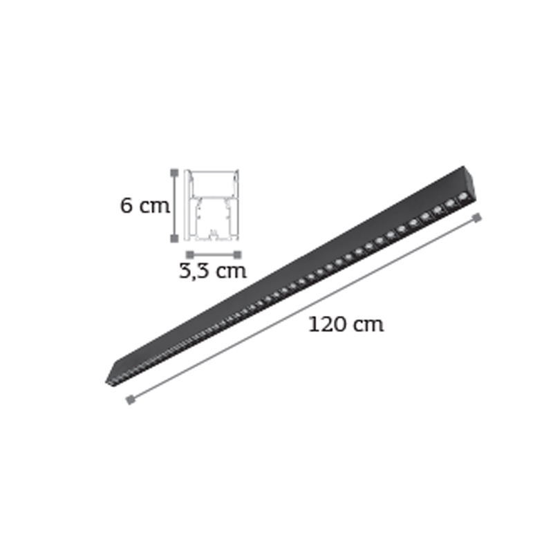 Πρόκειται για ένα μαύρο κρεμαστό φωτιστικό κατασκευασμένο από αλουμίνιο. Η ανάρτησή του είναι ρυθμιζόμενη ώστε να προσαρμοστεί σε κάθε χώρο. Μπορεί να τοποθετηθεί και ως φωτιστικό οροφής. Η γεωμετρική του σχεδίαση ταιριάζει σε όλους τους μοντέρνους χώρους.