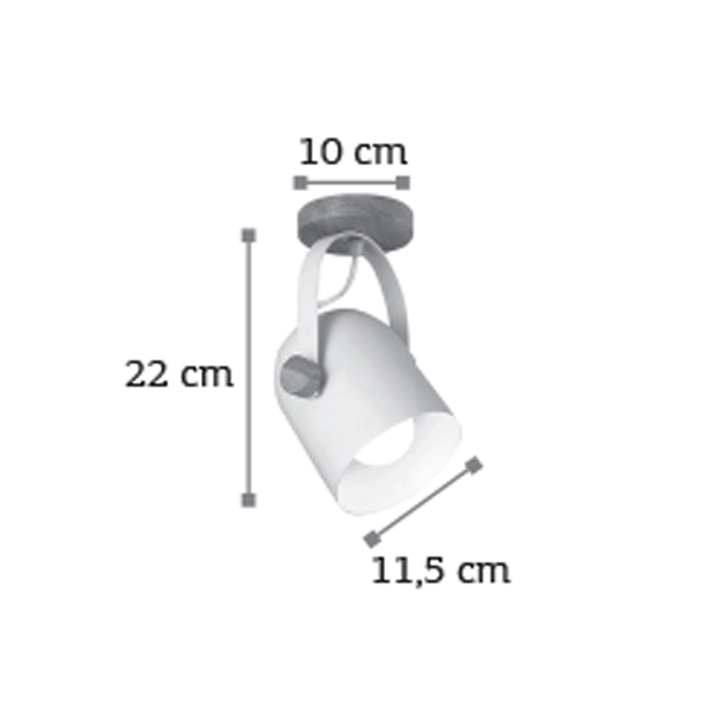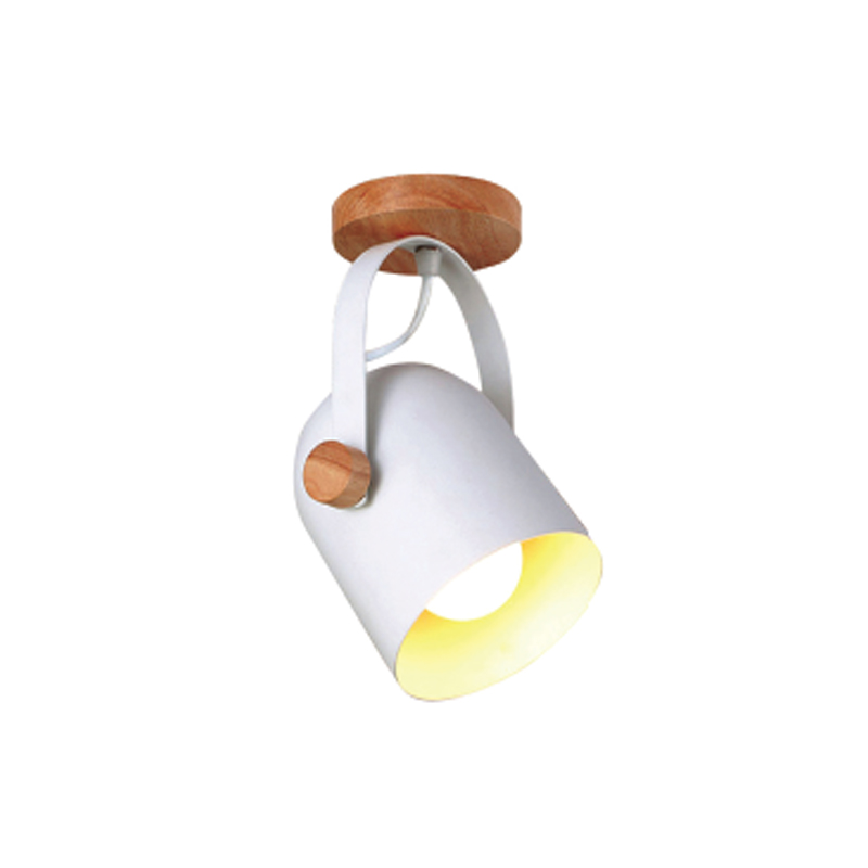 Πρόκειται για ένα σποτ κατασκευασμένο από λευκό μέταλλο και ξύλινες λεπτομέρειες. Η βάση του είναι επίσης κατασκευασμένη από ξύλο. Το μεταλλικό καπάκι του κινείται για να προσαρμοστεί ιδανικά σε οποιονδήποτε εσωτερικό χώρο. Μπορεί να τοποθετηθεί είτε στην οροφή είτε στον τοίχο.