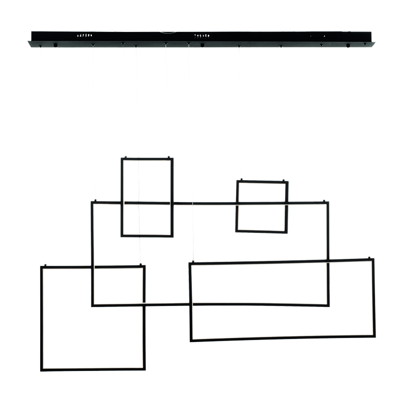 Πρόκειται για ένα μαύρο κρεμαστό φωτιστικό κατασκευασμένο από αλουμίνιο. Στο εσωτερικό του υπάρχει λευκή ακρυλική επιφάνεια που καλύπτει τον led φωτισμό θερμής απόχρωσης. Η ανάρτησή του είναι ρυθμιζόμενη ώστε να προσαρμοστεί σε κάθε χώρο. Η γεωμετρική του σχεδίαση ταιριάζει σε όλους τους μοντέρνους χώρους.