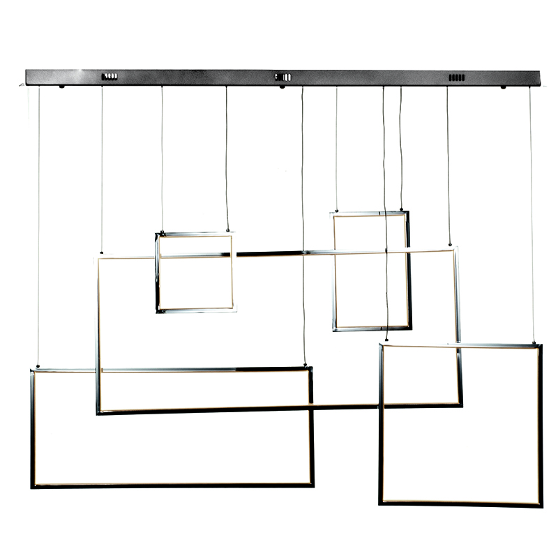 Πρόκειται για ένα χρώμιο κρεμαστό φωτιστικό κατασκευασμένο από αλουμίνιο. Στο εσωτερικό του υπάρχει λευκή ακρυλική επιφάνεια που καλύπτει τον led φωτισμό θερμής απόχρωσης. Η ανάρτησή του είναι ρυθμιζόμενη ώστε να προσαρμοστεί σε κάθε χώρο. Η γεωμετρική του σχεδίαση ταιριάζει σε όλους τους μοντέρνους χώρους.