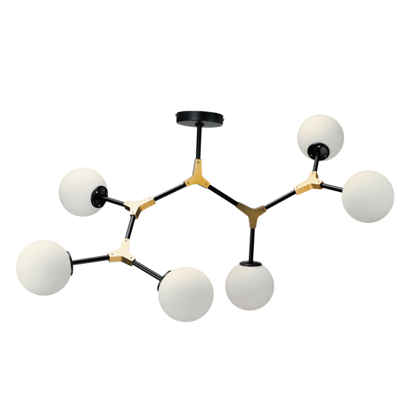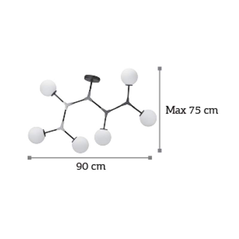 Πρόκειται για ένα κρεμαστό φωτιστικό από μαύρο μέταλλο και χρυσαφί λεπτομέρειες. Η λευκή οπαλίνα δένει αρμονικά με το υπόλοιπο σώμα και διαχέει το φως ομοιόμορφα σε όλον τον χώρο. Οι βραχίονες κινούνται για να πάρουν το επιθυμητό σχήμα.