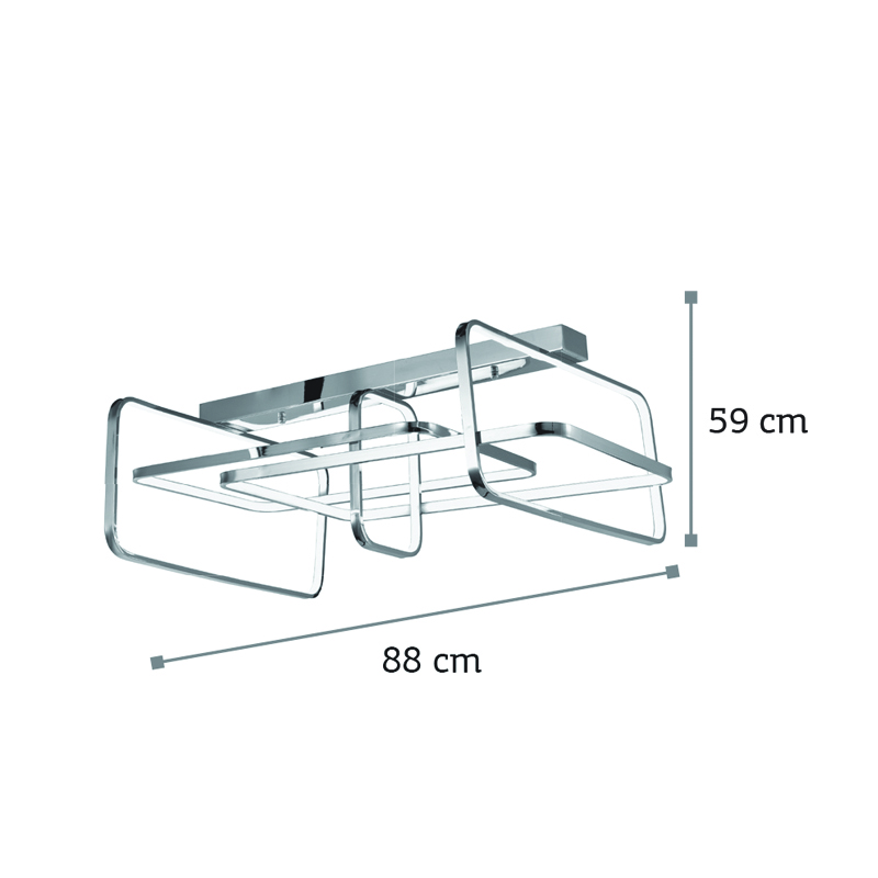 Πρόκειται για ένα χρώμιο φωτιστικό οροφής κατασκευασμένο από αλουμίνιο. Στο εσωτερικό του υπάρχει λευκή ακρυλική επιφάνεια που καλύπτει τον led φωτισμό απόχρωσης φυσικού χρώματος. Κατάλληλο και για χαμηλοτάβανους χώρους.