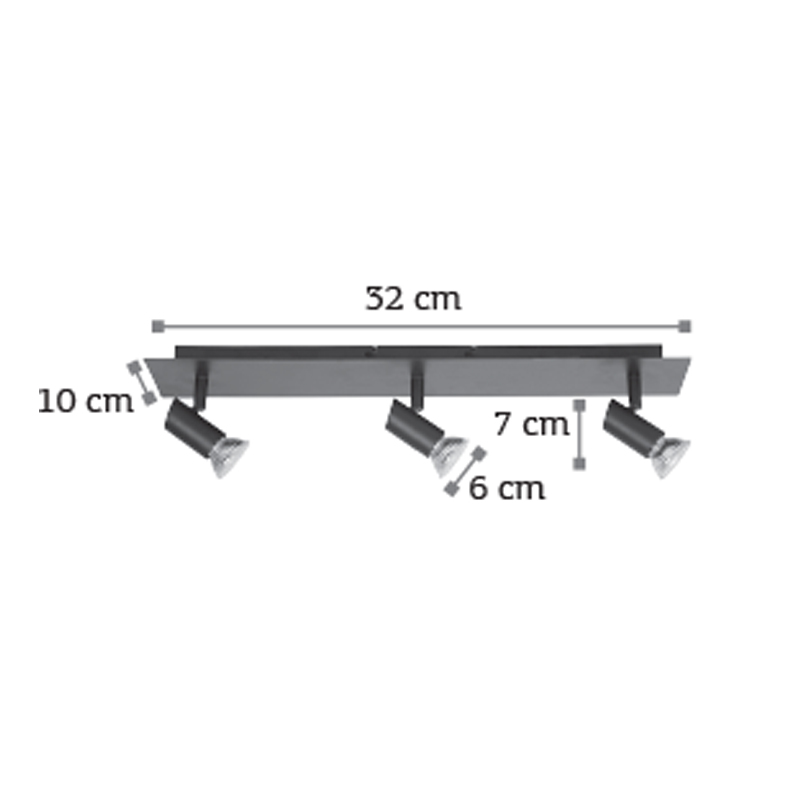Πρόκειται για ένα μεταλλικό σποτ σε μαύρη απόχρωση με τρεις λαμπτήρες. Το μπροστινό μέρος του κινείται προς οποιαδήποτε κατεύθυνση.