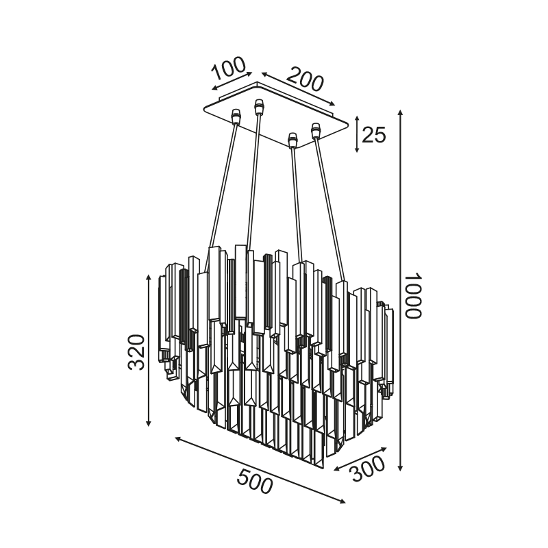^PENDANT LUMINAIRE 4XE14 CRYSTAL + GOLD METALLIC 50X30XH100CM EMPIRE