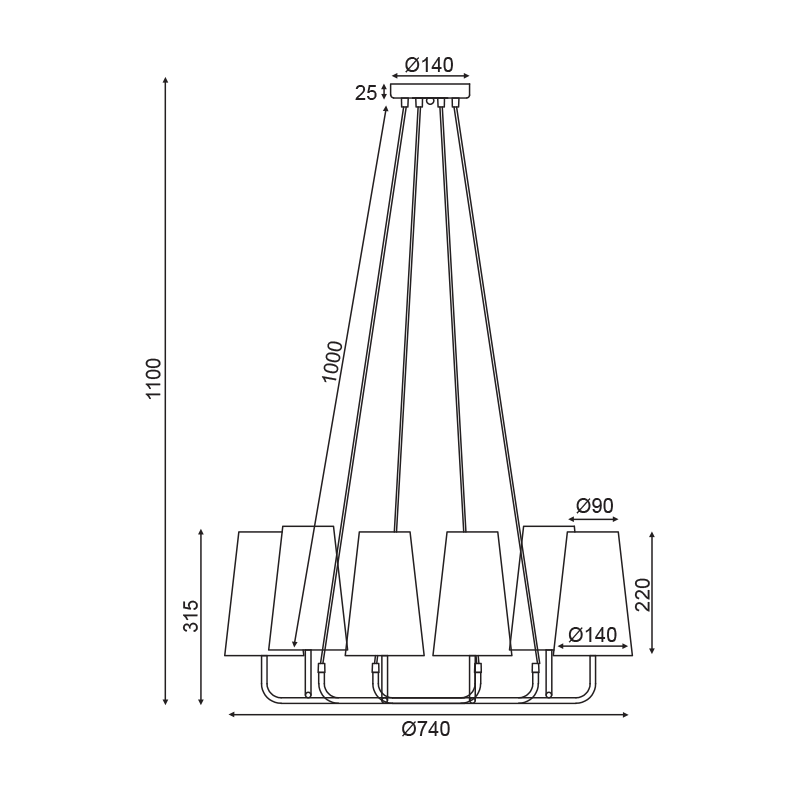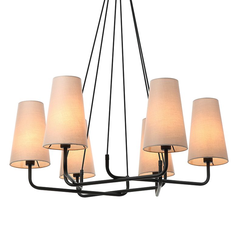 ^PENDANT LIGHTING 6ΧΕ14 BLACK METAL+ BIEGE SHADE 74Χ74ΧΗ110CM TUSCAN