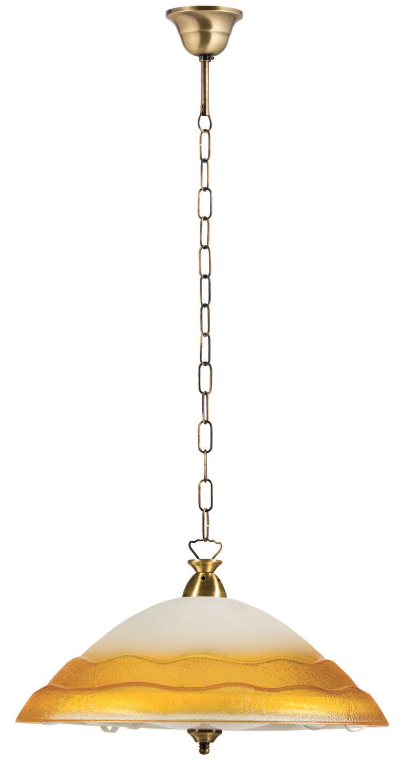 Φωτιστικό φθορίου γυαλί μελί με μεταλλικά στηρίγματα ανάρτηση μπρονζέ και λάμπες 40w+32w