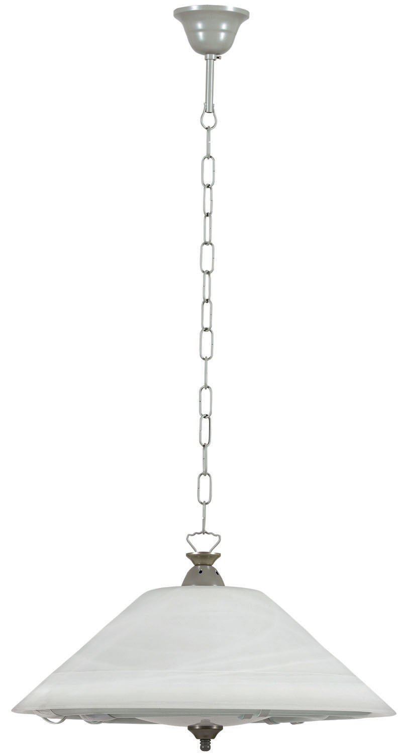 Φωτιστικό φθορίου γυαλί λευκό αλάβαστρο με μεταλλικά στηρίγματα ανάρτηση αλυσίδα νίκελ και λάμπες 40w+32w